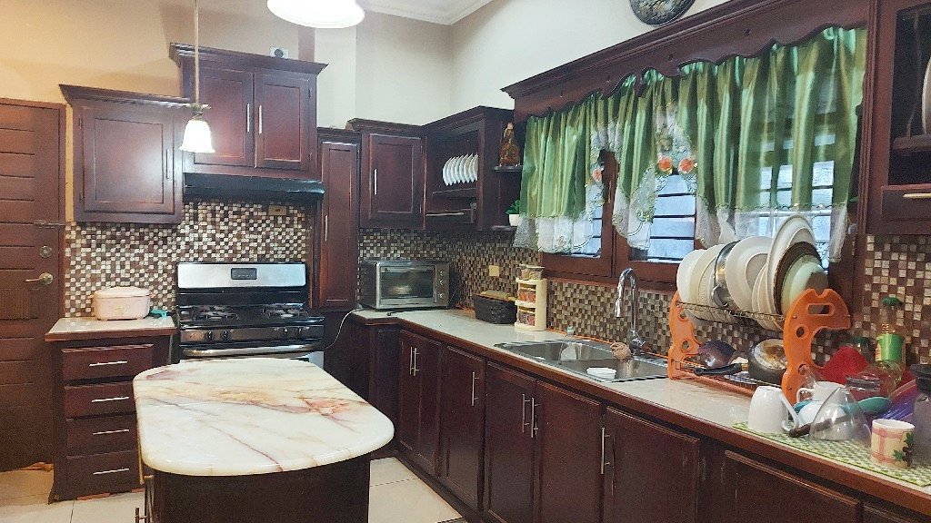 This ideal two-storey family home offers approximately 3,200sf of living space on 5,000sf freehold land. The house is fully air-conditioned and features high-quality finishes throughout, including teak kitchen cupboards, porcelain tiles, downlighters, and cedar cabinets. The layout includes 4 spacious bedrooms, 3 bathrooms, 2 living rooms, 2 dining rooms, a family room, a study, and a TV room, providing plenty of space for both relaxation and entertaining. The home also offers 2 powder rooms and a lovely patio area, perfect for outdoor living. With parking for 3 cars and a convenient location close to the highway and all amenities, this home offers both comfort and practicality for modern family living. – RS51431