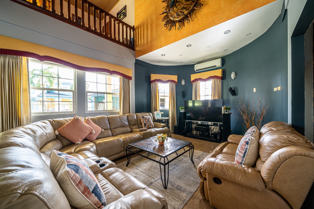 This impressive two-storey house spans 4,295sf on a 6,432sf freehold parcel, boasting 6 bedrooms and 5 bathrooms. The property offers stunning views of the Gulf of Paria and features a fully air-conditioned interior. Highlights include a 28′ x 14′ swimming pool, an 8′ x 8′ spa, and a distinctive water feature, enhancing its luxury and comfort. – RS54008