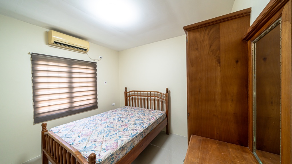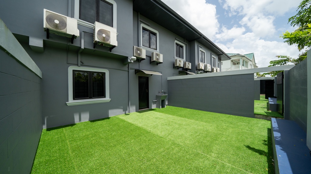 Recently refurbished, this fully air-conditioned, furnished and equipped 3 bedroom, 2.5 bathroom townhouse offers 1,500sf of comfortable living space. The interior features teak cupboards and blinds throughout, solid surface countertops, and an alarm system for added security. Situated within a gated compound in an ideal location, the property includes a private backyard and parking for 2 vehicles, making it perfect for modern, convenient living. – RR54329
