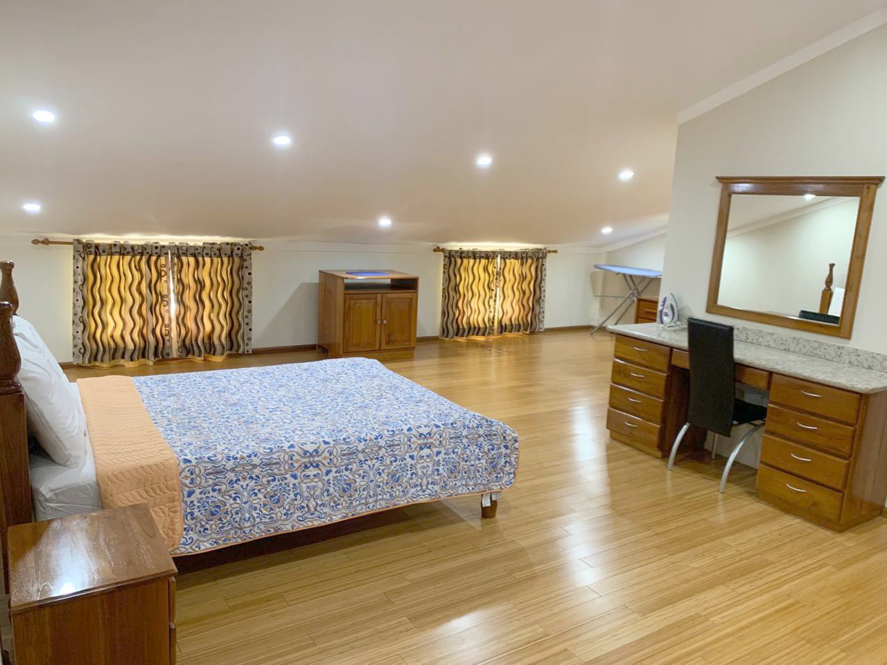 This modern, executive penthouse apartment offers 4,500sf of luxurious living space with stunning views of Cascade to Port of Spain. The apartment features 2 en-suite king-sized bedrooms, 2 powder rooms, a walk-in pantry, ample storage, and a laundry/utility room. The spacious open-plan kitchen, living, and dining areas are perfect for entertaining, and the property is equipped with a Bose surround sound system and Android flat-screen TVs. Located in a secure, gated community, residents can enjoy access to a swimming pool and clubhouse. The apartment is being rented fully furnished and equipped, with electricity included for added convenience. – RS54574