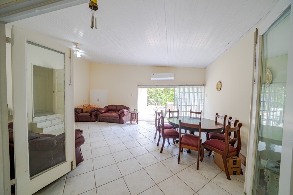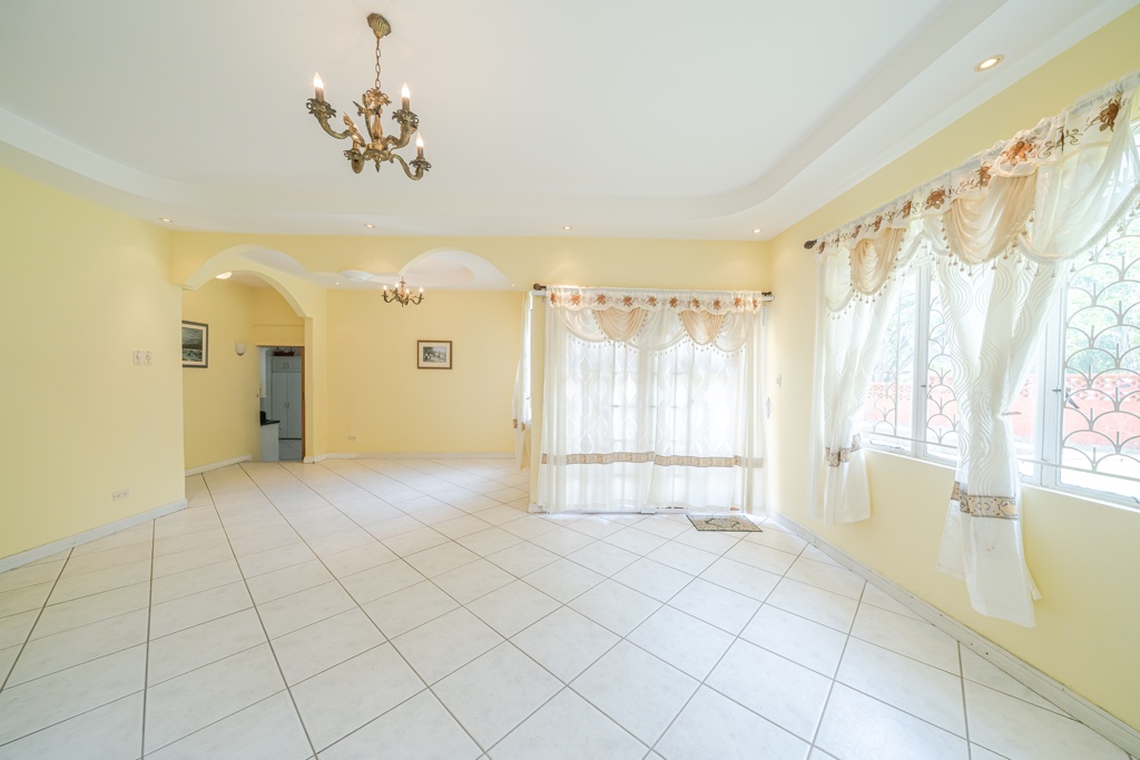 This single storey residence offers comfortable living with 3 bedrooms, 2 bathrooms, a formal living and dining room, spacious kitchen and family room opening onto a welcoming patio with back garden with bearing fruit trees —perfect for relaxation or entertaining. The property also includes a self-contained 1-bedroom annex, ideal for guests, extended family, or rental income. Situated on 10,385sf of land, the home spans approximately 3,707sf and includes covered parking for 2 vehicles. Located in a quiet, gated community with night security, the property offers both privacy and peace of mind. Additional features include kitchen appliances, making this home move-in ready and ideal for family living – RS55012