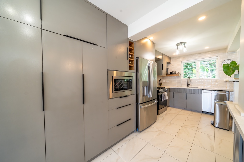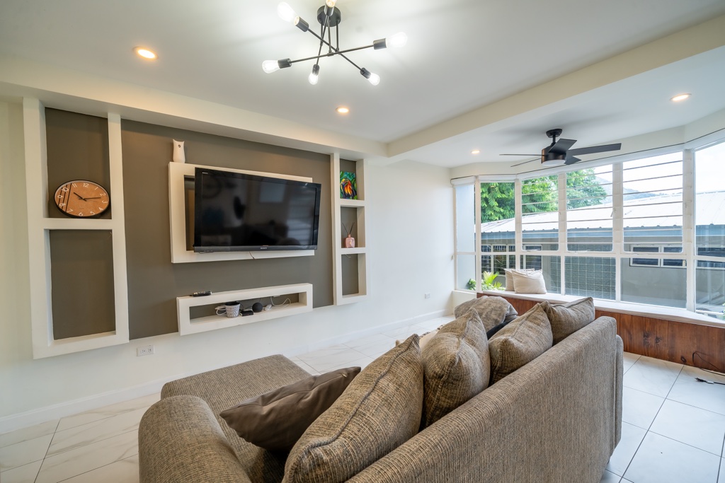 This bright and airy 3 bedroom, 2.5 bathroom townhouse offers approximately 1,500sf of comfortable living in a pet-friendly, gated compound. Thoughtfully renovated, the home boasts a brand-new kitchen, updated powder room, modern downstairs flooring, gypsum ceilings, recessed lighting, and stylish fixtures. Additional upgrades include select modern ceiling fans, updated plumbing, and electrical systems. The open-plan living areas flow seamlessly onto a back patio with a charming rock garden and water feature, while large windows capture serene views of the surrounding valley. Fully air-conditioned throughout, the home also includes a 450g water tank, water heater, and parking for 1 vehicle. A move-in ready property with lovely views and a fresh modern touch. – RS55193