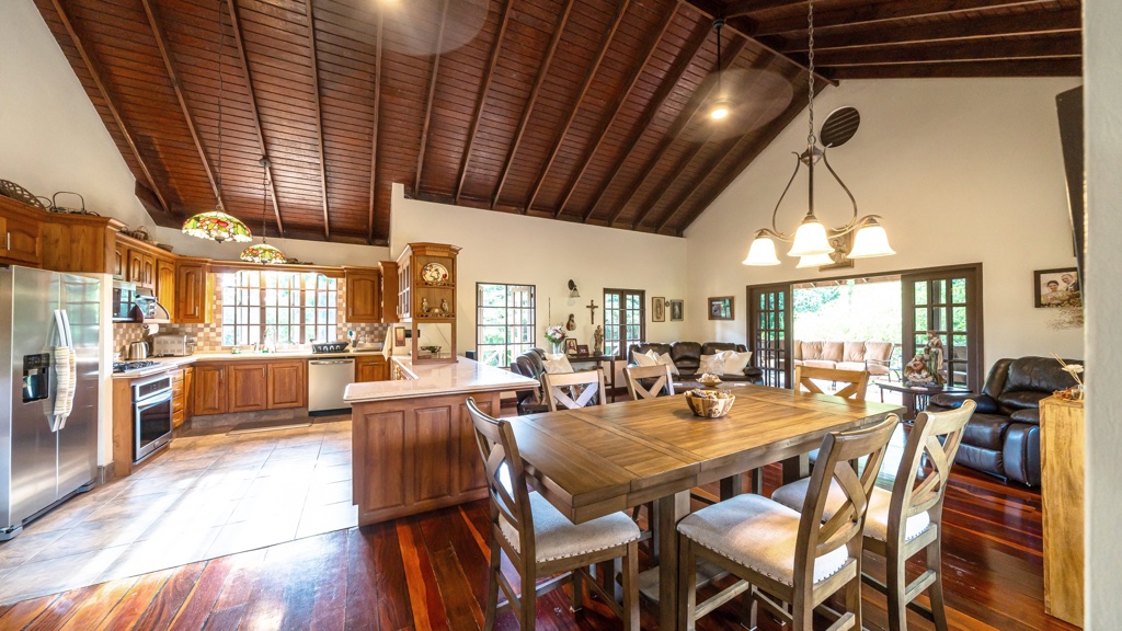 Discover the perfect blend of comfort and nature in this impressive 5 bedroom, 4.5 bathroom country residence set on 1.7 acres within a private, gated community. The home offers light-filled open living spaces, inviting verandas for entertaining, a dedicated office, family and games rooms, plus a secluded primary suite with walk-in closet, en-suite bathroom, and balcony. Practical features include 2 powder rooms, a 20KW generator, 16,000g water storage, a 5-car covered garage, and an electronic gate. Surrounded by mature fruit trees, landscaped gardens, and a thriving orchard, this fully equipped property is a rare chance to own a peaceful retreat with modern convenience. Located a short drive from the highway. – RS55208