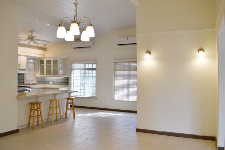 Well maintained, single-storey family residence ideally located in the heart of Westmoorings. This fully air-conditioned home offers 3 bedrooms and 4 bathrooms, along with a study and a spacious kitchen fitted with quartz countertops and shaker-style cabinetry. The property also features a swimming pool and a two-car covered garage. Situated in a highly sought-after, family-friendly neighbourhood. Being rented with appliances only. – RR55371