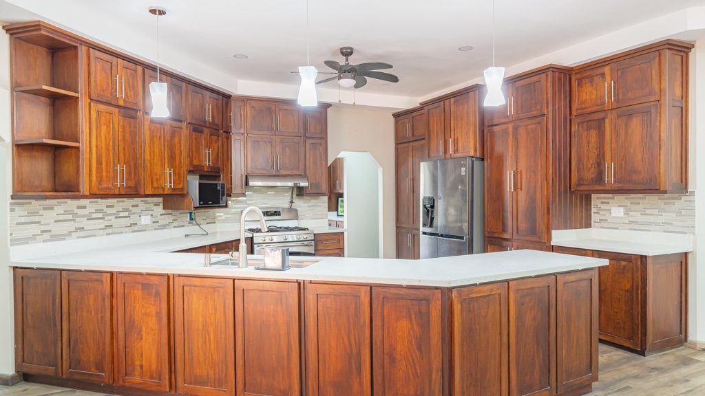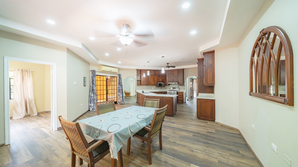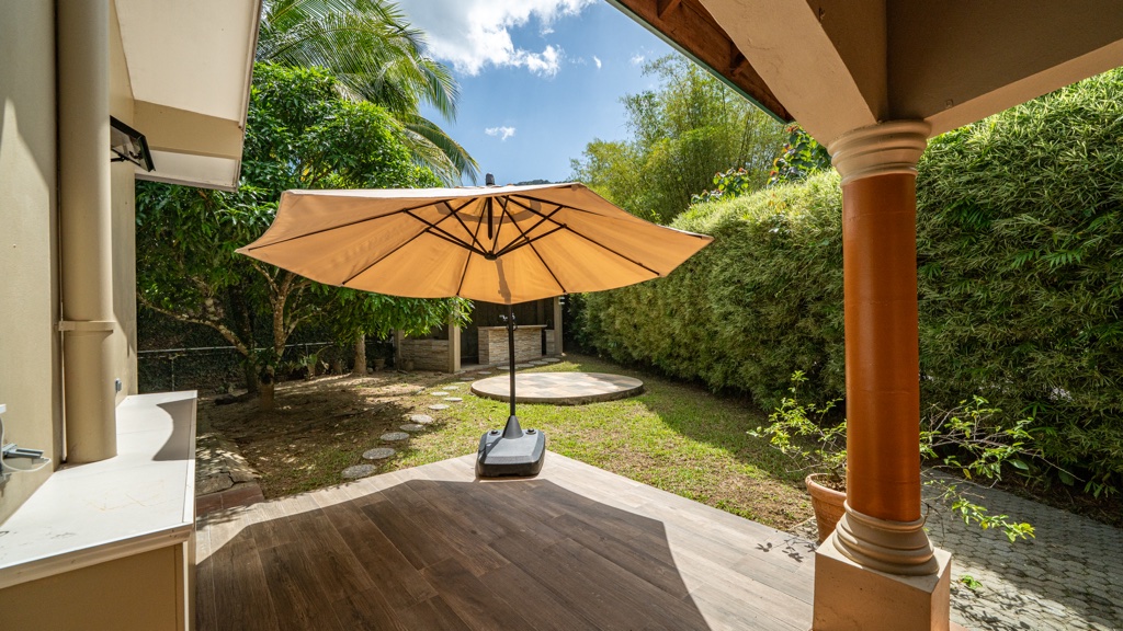 Nestled in a quiet, tranquil residential community, surrounded by lush greenery, this well-maintained single storey home sits on 8,452sf of land, offering privacy and generous outdoor space. The property features 4 bedrooms (primary en-suite) and 3 bathrooms, a spacious kitchen with customised cabinetry, and an open-plan living and dining area that opens onto a rear patio. A paved entertainment area with a gazebo and outdoor kitchen provides additional space for gatherings and relaxation. Additional highlights include a two-car enclosed garage with laundry area, full air-conditioning, and an alarm and camera security system. Being rented with appliances only. – RR55394