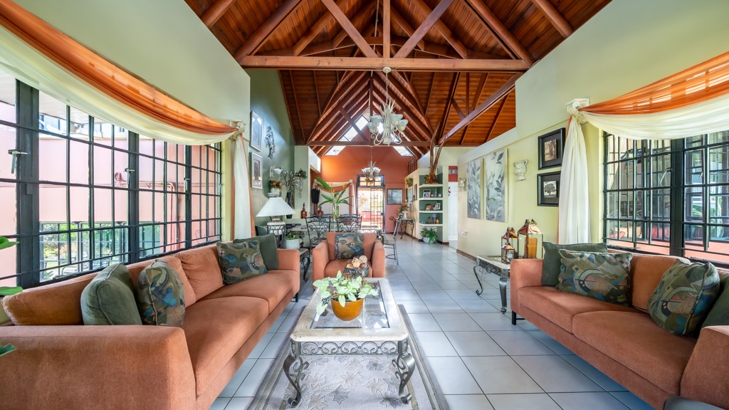 Set on 16,371sf freehold land, this impressive elevated two-storey home offers 3,723sf of well-designed living space. The property comprises 5 generously sized bedrooms and 5 bathrooms, a bright and expansive kitchen, and an open-concept living and dining area that opens onto a large patio capturing sweeping ocean views. The grounds feature a wide, gently sloping garden framed by mature fruit and ornamental trees, offering exceptional potential for a swimming pool and outdoor entertainment area, ideal for both family living and hosting guests. – RS55395