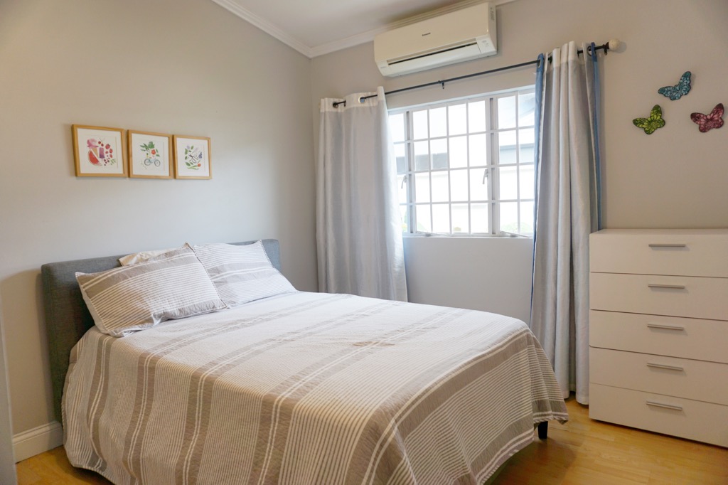 This single storey home offers 4 bedrooms and 3 bathrooms, featuring a spacious kitchen and open-plan living areas designed for comfort and ease. Two of the bedrooms are en-suite and include walk-in closets, while the main bedroom also boasts a private office. A separate TV room is conveniently located just off the main living space. The property is complemented by a beautifully maintained mature garden, an open patio ideal for entertaining, and a plunge pool with an attractive water feature. Situated in a secure, gated family-friendly neighbourhood, the home is close to shopping malls and a range of everyday amenities. Parking is available for two vehicles. – RR55522