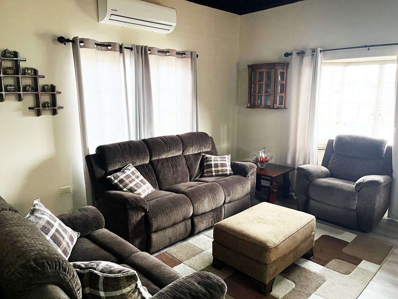 This well-maintained single-storey home sits on 7,835sf of freehold land and offers approximately 2,300sf of building space, featuring 4 bedrooms and 3 bathrooms. The layout includes a comfortable kitchen, living and dining area, a separate TV room, laundry, and a storeroom. Fully air-conditioned and finished with laminate floors throughout, the home also boasts a welcoming porch with a patio ideal for entertaining, along with a garage, all conveniently located close to amenities – RS55532